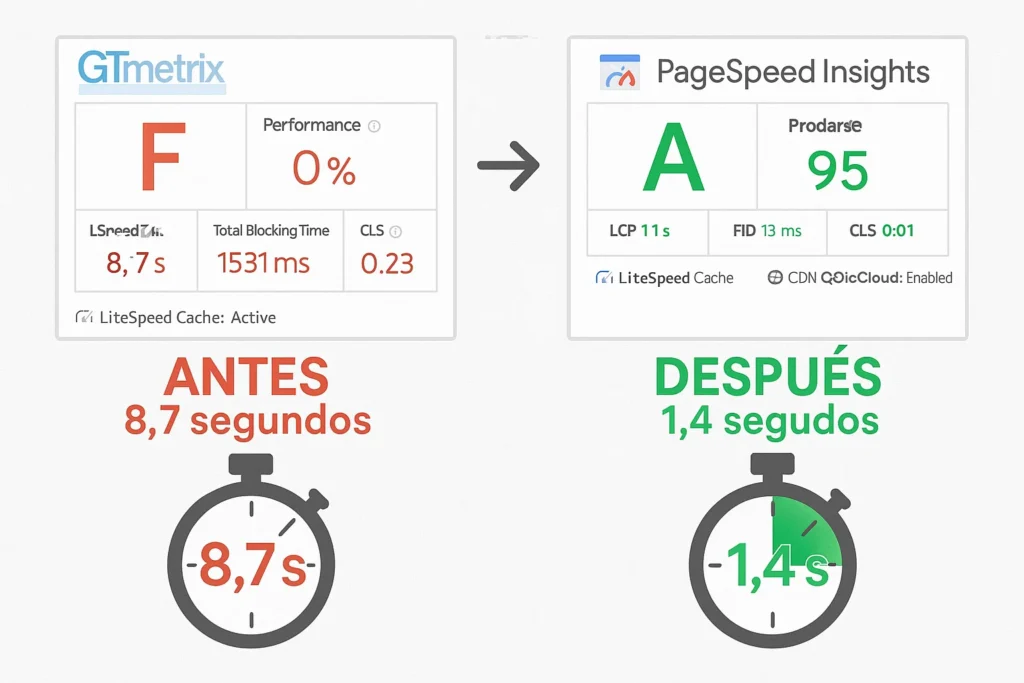 No solo migramos tu sitio, lo transformamos . Usamos herramientas profesionales como GTmetrix y Google PageSpeed Insights para garantizar carga en menos de 2 segundos.